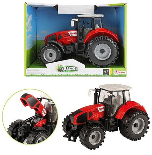 Acest tractor din plastic reproduce fidel liniile și aspectul unui model agricol adevărat. Detaliile bine conturate și culorile vii atrag privirile celor mici și stârnesc